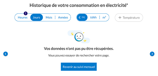 Consulter OBLIGATOIREMENT l'historique de conso sous SMILE afin de vérifier la catégorie de relève afin de savoir si le compteur transmet des données réelles ou estimées. Si le compteur transmet des données mensuelles estimées nous vous invitons à saisir sur SGE ENEDIS une M002 – Demande comptage – Compteur silencieux + escalade case pour suivre l’ops.