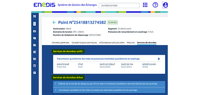 Pour l'électricité, vérifier dans SGE sur l’onglet « Services de données» :
