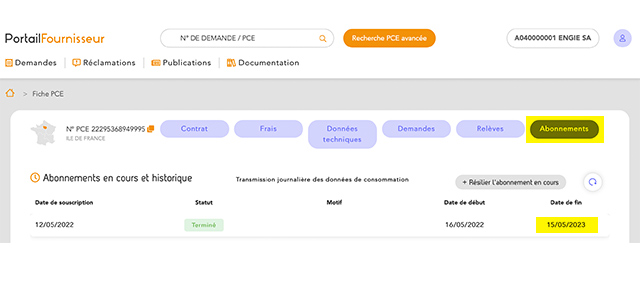 Pour le gaz, vérifier sur le portail GRDF dans « Demandes Pommard » qu’une nouvelle demande « TJDC » a été créée après la fin de son abonnement.