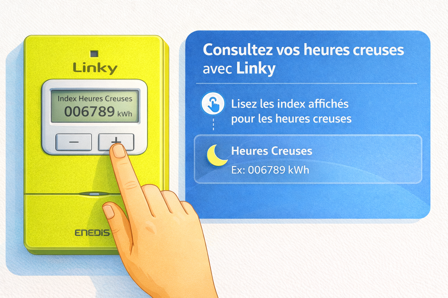 Les plages HP/HC sont fixées par Enedis et varient selon votre localisation. Vous pouvez les retrouver sur votre facture, dans votre espace client ENGIE ou directement sur votre compteur.